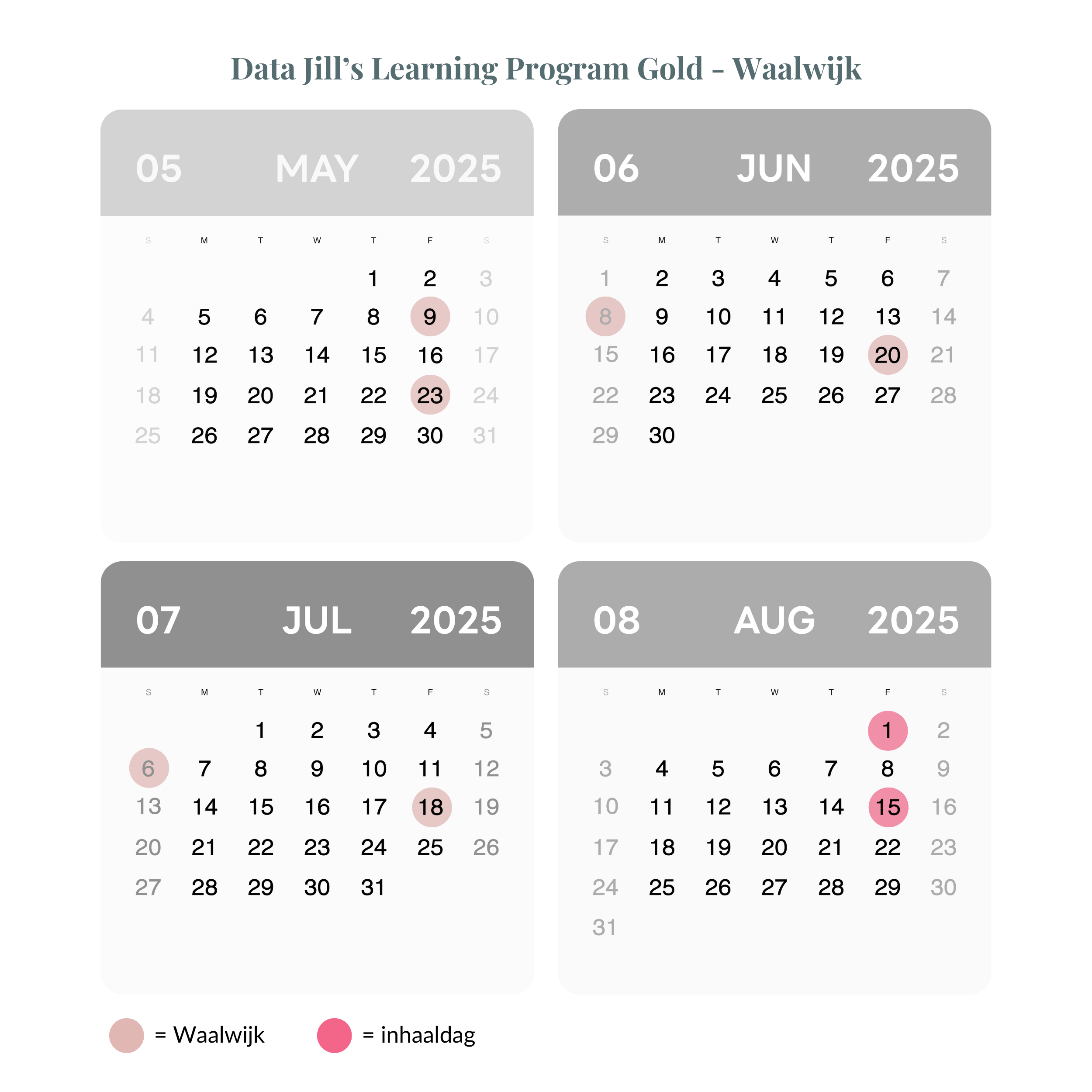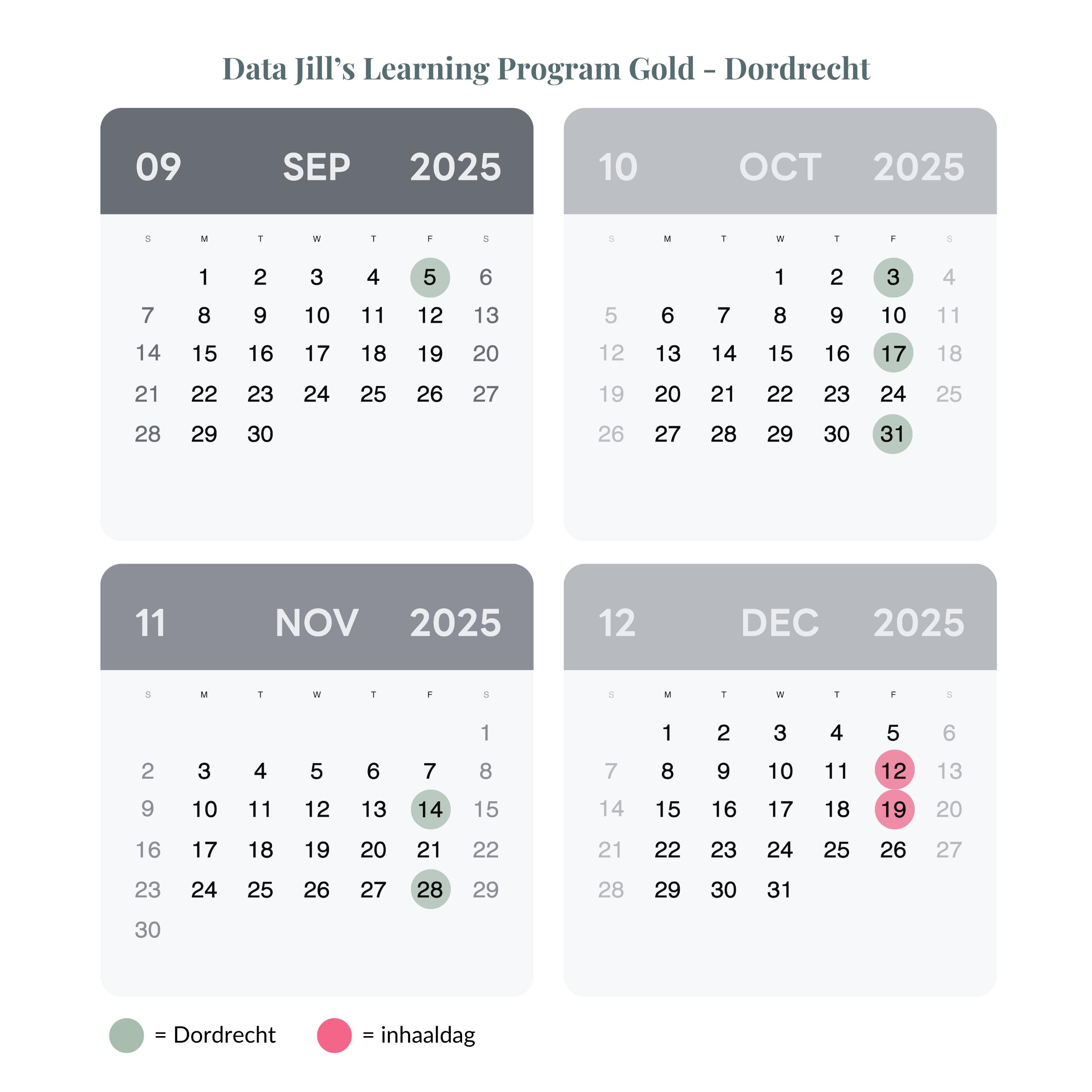 Disclaimer: door het invullen van dit formulier word je toegevoegd aan de lijst met geïnteresseerden voor een plek in het Jill’s Learning Program, maar heb je niet automatisch een plek. Om iedereen een eerlijke kans te geven, verzamelen we eerst alle inschrijvingen en ontvang je later bericht of je de gelukkige bent die een plekje heeft bemachtigd in het traject Gold.