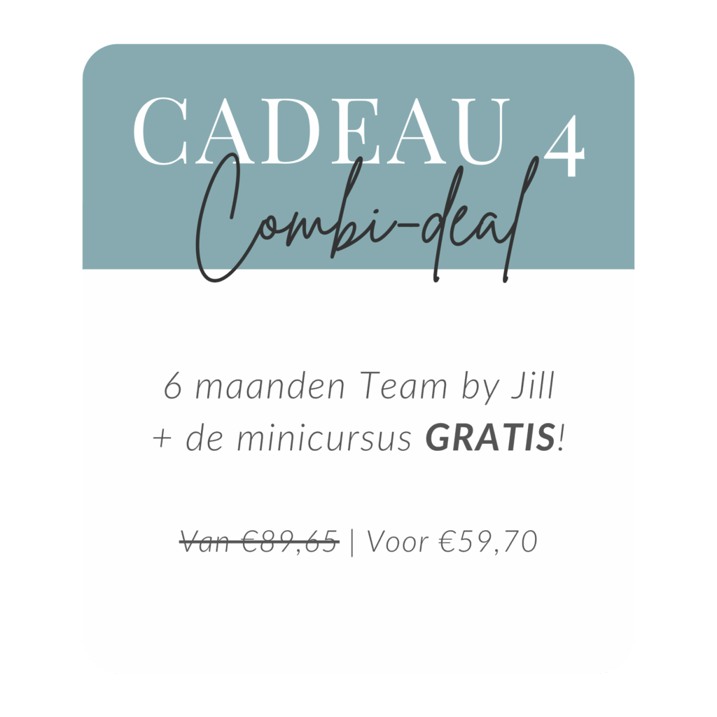 Of kies voor de voordelige combi-deal en ontvang deze minicursus GRATIS bij 6 maanden lidmaatschap van Team by Jill!