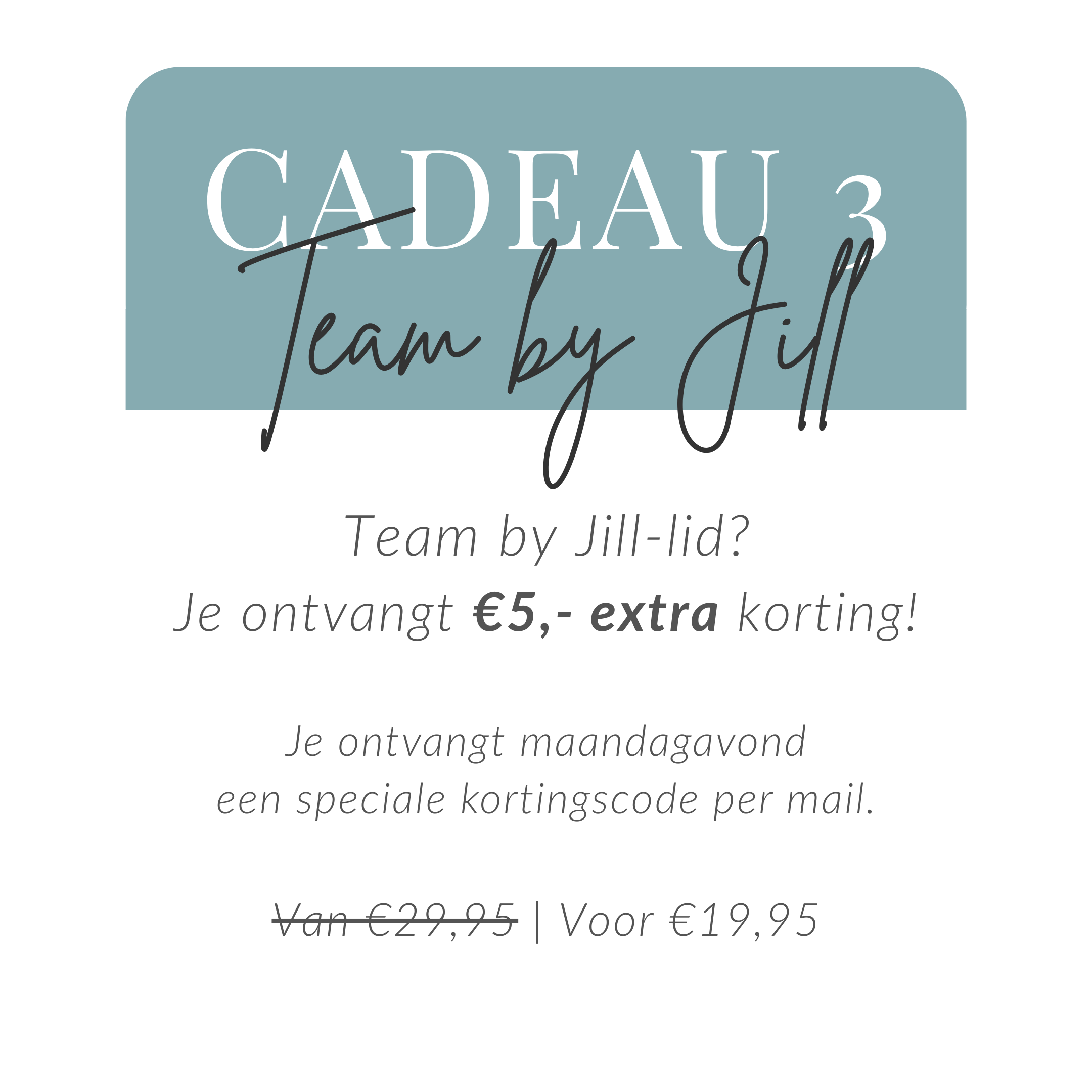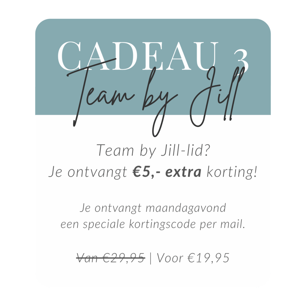 Team by Jill lid? Jij ontvangt sowieso een mailtje met een speciale kortingscode voor nog een keer extra €5,- korting